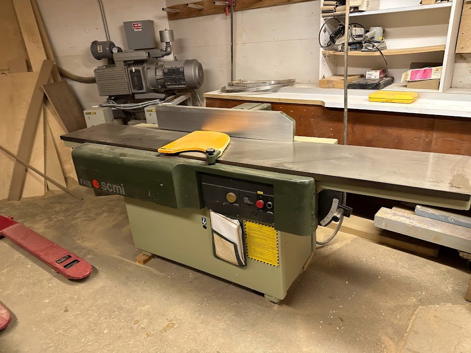 SCM F410 (T) Jointer manufactured by SCM Group, is a heavy duty, long bed 16” jointer. It features cast iron tables, tilting fence and a quick change Tersa cutterhead.